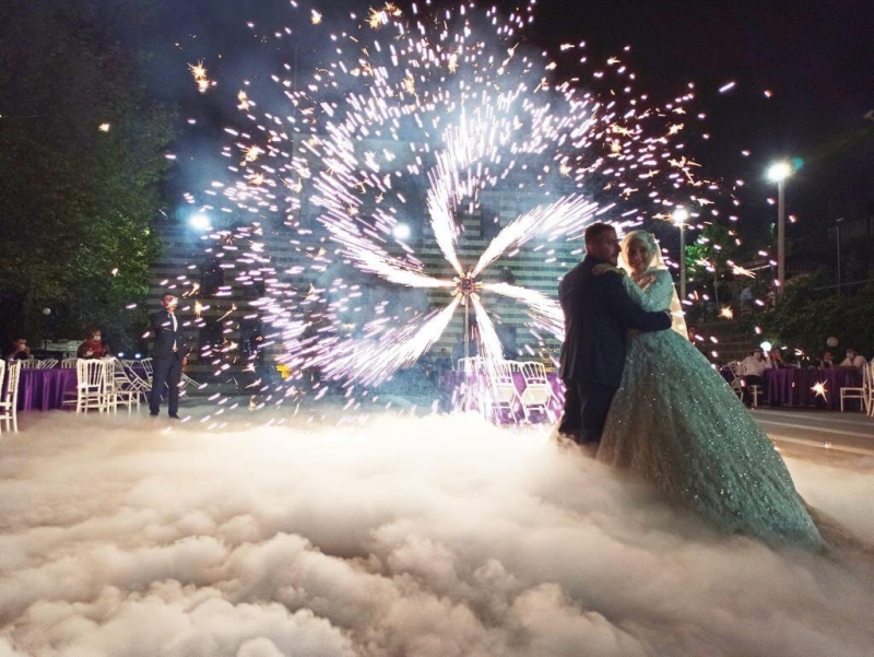 Düğün bahçelerinin vazgeçilmezi papatya motifli volkan gösterisi